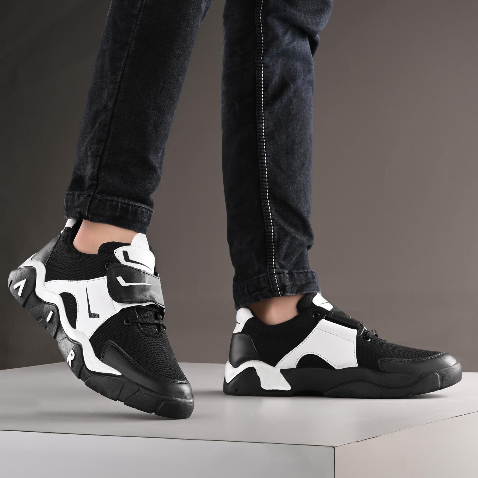 But comfort is only half the story. These sneakers are also a statement piece, boasting a sleek and modern design that's sure to turn heads. The contrasting black and white color scheme exudes a timeless elegance, while the unique sculpted sole adds a touch of personality. Whether you're pairing them with jeans and a t-shirt or a dressy outfit, these sneakers will elevate your style to new heights.